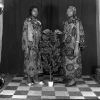 158. EAP054/1/171/224 Reference (shelfmark): EAP054/1/171/224 Title: Recreational photograph [c 1986] Scope & Content: 2 women standing, either side of a plastic tree, both touching it Format of original: 59mm x 59mm plastic negative Collection Area: Endangered Archives Programme Languages: Not applicable Date Range: c 1986 Extent: 1 TIFF image