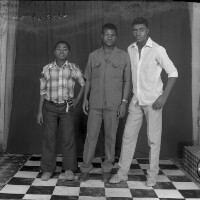159. EAP054/1/171/242 Reference (shelfmark): EAP054/1/171/242 Title: Recreational photograph [c 1986] Scope & Content: 3 young men standing Format of original: 59mm x 59mm plastic negative Collection Area: Endangered Archives Programme Languages: Not applicable Date Range: c 1986 Extent: 1 TIFF image