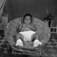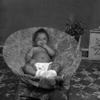 169. EAP054/1/132/314 Reference (shelfmark): EAP054/1/132/314 Title: Recreational photograph [c 1980] Scope & Content: Baby in an armchair. Format of original: 59mm x 59mm plastic negative Collection Area: Endangered Archives Programme Languages: Not applicable Date Range: c 1980 Extent: 1 TIFF image