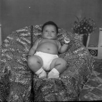 167. EAP054/1/132/276 Reference (shelfmark): EAP054/1/132/276 Title: Recreational photograph [c 1980] Scope & Content: Baby in an armchair. Format of original: 59mm x 59mm plastic negative Collection Area: Endangered Archives Programme Languages: Not applicable Date Range: c 1980 Extent: 1 TIFF image