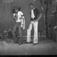 168. EAP054/1/132/313 Reference (shelfmark): EAP054/1/132/313 Title: Recreational photograph [c 1980] Scope & Content: 2 boys standing in show off poses Format of original: 59mm x 59mm plastic negative Collection Area: Endangered Archives Programme Languages: Not applicable Date Range: c 1980 Extent: 1 TIFF image