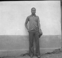 170. EAP054/1/132/325 Reference (shelfmark): EAP054/1/132/325 Title: Recreational photograph [c 1980] Scope & Content: Boy standing, hand in pocket with a satchel. In front of wall Format of original: 56mm x 59mm plastic negative Collection Area: Endangered Archives Programme Languages: Not applicable Date Range: c 1980 Extent: 1 TIFF image