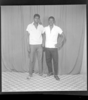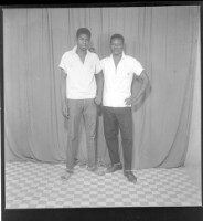 162. EAP449/2/14/370 Reference (shelfmark): EAP449/2/14/370 Title: Two young men wearing white t-shirts and black pants standing in the studio. Collection Area: Endangered Archives Programme Languages: Not applicable Date Range: 2nd half od the 20th century Extent: 1 TIFF image