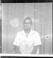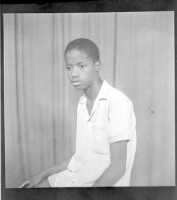 165. EAP449/2/14/493 Reference (shelfmark): EAP449/2/14/493 Title: A young man wearing a white short-sleeved shirt sitting face-forward in the studio. Collection Area: Endangered Archives Programme Languages: Not applicable Date Range: 2nd half od the 20th century Extent: 1 TIFF image
