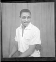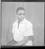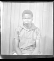 170. EAP449/2/14/538 Reference (shelfmark): EAP449/2/14/538 Title: A young man wearing a black short-sleeved shirt sitting face-forward in the studio. Collection Area: Endangered Archives Programme Languages: Not applicable Date Range: 2nd half od the 20th century Extent: 1 TIFF image