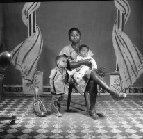 171. EAP054/1/132/334 Reference (shelfmark): EAP054/1/132/334 Title: Recreational photograph [c 1980] Scope & Content: Woman with legs crossed, holding a baby plus a child beside her Format of original: 58mm x 59mm plastic negative Collection Area: Endangered Archives Programme Languages: Not applicable Date Range: c 1980 Extent: 1 TIFF image