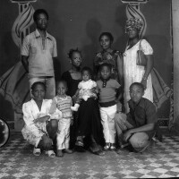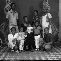 172. EAP054/1/132/338 Reference (shelfmark): EAP054/1/132/338 Title: Recreational photograph [c 1980] Scope & Content: Family group 3 adults, and 6 children Format of original: 59mm x 59mm plastic negative Collection Area: Endangered Archives Programme Languages: Not applicable Date Range: c 1980 Extent: 1 TIFF image