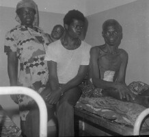 174. EAP054/1/132/352 Reference (shelfmark): EAP054/1/132/352 Title: Recreational photograph [c 1980] Scope & Content: Man with bandaged stomach on hospital bed with 2 visitors Format of original: 54mm x 59mm plastic negative Collection Area: Endangered Archives Programme Languages: Not applicable Date Range: c 1980 Extent: 1 TIFF image