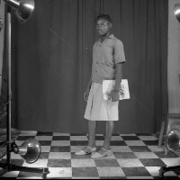 171. EAP054/1/170/401 Reference (shelfmark): EAP054/1/170/401 Title: Recreational photograph [c 1985] Scope & Content: Young woman standing, holding a notebook Format of original: 59mm x 59mm plastic negative Collection Area: Endangered Archives Programme Languages: Not applicable Date Range: c 1985 Extent: 1 TIFF image