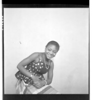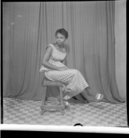 176. EAP449/2/14/265 Reference (shelfmark): EAP449/2/14/265 Title: A woman wearing a dress, pagne, and necklace sitting in profile in the studio. Collection Area: Endangered Archives Programme Languages: Not applicable Date Range: 2nd half od the 20th century Extent: 1 TIFF image
