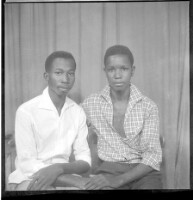 177. EAP449/2/14/411 Reference (shelfmark): EAP449/2/14/411 Title: Two young men wearing white and grey shirts sitting in profile in the studio. Collection Area: Endangered Archives Programme Languages: Not applicable Date Range: 2nd half od the 20th century Extent: 1 TIFF image