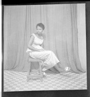 178. EAP449/2/14/464 Reference (shelfmark): EAP449/2/14/464 Title: A young woman wearing a necklace and earrings sitting in profile in the studio. Collection Area: Endangered Archives Programme Languages: Not applicable Date Range: 2nd half od the 20th century Extent: 1 TIFF image