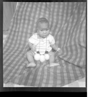 186. EAP449/2/14/174 Reference (shelfmark): EAP449/2/14/174 Title: A baby wearing a t-shirt and an amulet sitting face-forward in the studio. Collection Area: Endangered Archives Programme Languages: Not applicable Date Range: 2nd half od the 20th century Extent: 1 TIFF image