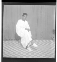 187. EAP449/2/14/213 Reference (shelfmark): EAP449/2/14/213 Title: A man wearing a boubou and hat sitting in profile in the studio. Collection Area: Endangered Archives Programme Languages: Not applicable Date Range: 2nd half od the 20th century Extent: 1 TIFF image