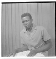 182. EAP449/2/14/547 Reference (shelfmark): EAP449/2/14/547 Title: A man wearing a grey t-shirt sitting in profile in the studio. Collection Area: Endangered Archives Programme Languages: Not applicable Date Range: 2nd half od the 20th century Extent: 1 TIFF image