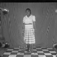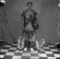 20. EAP054/1/57/106 Reference (shelfmark): EAP054/1/57/106 Title: Recreational photograph [c 1988] Scope & Content: Young lady from Mbouda, standing, with a tinsel bouquet in front of her. Format of original: 59mm x 59mm plastic negative Collection Area: Endangered Archives Programme Languages: Not applicable Date Range: c 1988 Extent: 1 TIFF image