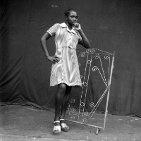 195. EAP054/1/80/275 Reference (shelfmark): EAP054/1/80/275 Title: Recreational photograph [c 1970-c 1995] Scope & Content: Young woman standing by iron grillwork. Format of original: 59mm x 59mm plastic negative Collection Area: Endangered Archives Programme Languages: Not applicable Date Range: c 1970-c 1995 Extent: 1 TIFF image
