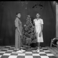 193. EAP054/1/145/279 Reference (shelfmark): EAP054/1/145/279 Title: Recreational photograph [c 1970-c 1995] Scope & Content: 2 young women standing either side of plastic tree Format of original: 59mm x 59mm plastic negative Collection Area: Endangered Archives Programme Languages: Not applicable Date Range: c 1970-c 1995 Extent: 1 TIFF image