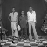 195. EAP054/1/145/284 Reference (shelfmark): EAP054/1/145/284 Title: Recreational photograph [c 1970-c 1995] Scope & Content: 3 boys standing. Format of original: 59mm x 59mm plastic negative Collection Area: Endangered Archives Programme Languages: Not applicable Date Range: c 1970-c 1995 Extent: 1 TIFF image