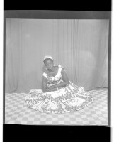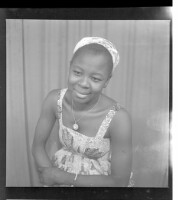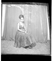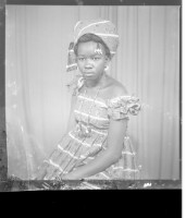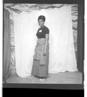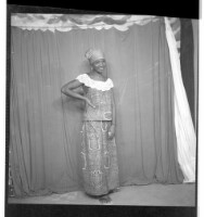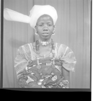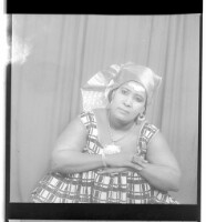 200. EAP449/2/14/252 Reference (shelfmark): EAP449/2/14/252 Title: A woman wearing a dress, pagne, and head wrap standing face-forward in the studio. Collection Area: Endangered Archives Programme Languages: Not applicable Date Range: 2nd half od the 20th century Extent: 1 TIFF image