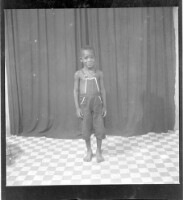 201. EAP449/2/14/293 Reference (shelfmark): EAP449/2/14/293 Title: A young boy black with bare feet, standing and smiling face-forward in the studio. Collection Area: Endangered Archives Programme Languages: Not applicable Date Range: 2nd half od the 20th century Extent: 1 TIFF image