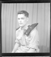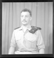 204. EAP449/2/14/425 Reference (shelfmark): EAP449/2/14/425 Title: A young white man wearing a police uniform sitting in profile in the studio. Collection Area: Endangered Archives Programme Languages: Not applicable Date Range: 2nd half od the 20th century Extent: 1 TIFF image