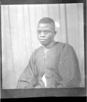 206. EAP449/2/14/505 Reference (shelfmark): EAP449/2/14/505 Title: A man wearing a black boubou and glasses sitting in profile in the studio. Collection Area: Endangered Archives Programme Languages: Not applicable Date Range: 2nd half od the 20th century Extent: 1 TIFF image