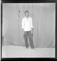 207. EAP449/2/14/511 Reference (shelfmark): EAP449/2/14/511 Title: A young man wearing a white shirt and pants standing face-forward in the studio. Collection Area: Endangered Archives Programme Languages: Not applicable Date Range: 2nd half od the 20th century Extent: 1 TIFF image