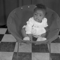 219. EAP054/1/46/533 Reference (shelfmark): EAP054/1/46/533 Title: Recreational photograph [c 1984 - 1985] Scope & Content: Baby in an armchair. Format of original: 59mm x 59mm plastic negative Collection Area: Endangered Archives Programme Languages: Not applicable Date Range: 1984-1985 Extent: 1 TIFF image
