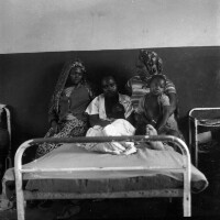 211. EAP054/1/132/205 Reference (shelfmark): EAP054/1/132/205 Title: Recreational photograph [c 1980] Scope & Content: Sick man on a hospital bed with 3 people beside him Format of original: 59mm x 59mm plastic negative Collection Area: Endangered Archives Programme Languages: Not applicable Date Range: c 1980 Extent: 1 TIFF image