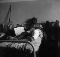 212. EAP054/1/132/233 Reference (shelfmark): EAP054/1/132/233 Title: Recreational photograph [c 1980] Scope & Content: Man in hospital bed with a leg in plaster Format of original: 56mm x 59mm plastic negative Collection Area: Endangered Archives Programme Languages: Not applicable Date Range: c 1980 Extent: 1 TIFF image