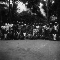 213. EAP054/1/132/237 Reference (shelfmark): EAP054/1/132/237 Title: Recreational photograph [c 1980] Scope & Content: Group of more than 50 people in front of trees Format of original: 59mm x 59mm plastic negative Collection Area: Endangered Archives Programme Languages: Not applicable Date Range: c 1980 Extent: 1 TIFF image