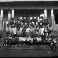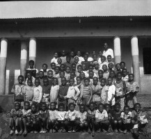 215. EAP054/1/132/249 Reference (shelfmark): EAP054/1/132/249 Title: Recreational photograph [c 1980] Scope & Content: Group of more than 50 people outside a church or hospital building Format of original: 55mm x 59mm plastic negative Collection Area: Endangered Archives Programme Languages: Not applicable Date Range: c 1980 Extent: 1 TIFF image