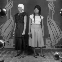 219. EAP054/1/132/463 Reference (shelfmark): EAP054/1/132/463 Title: Recreational photograph [c 1980] Scope & Content: 2 young women from Mbouda, one with black and one with white headscarf. Format of original: 59mm x 59mm plastic negative Collection Area: Endangered Archives Programme Languages: Not applicable Date Range: c 1980 Extent: 1 TIFF image