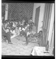 - A photo of a group of 24 people, 9 girls and 15 men, taken in a veranda of a house.