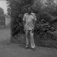 231. EAP054/1/33/326 Reference (shelfmark): EAP054/1/33/326 Title: Recreational photograph [c 1986] Scope & Content: Man standing by bushes Format of original: 59mm x 59mm plastic negative Collection Area: Endangered Archives Programme Languages: Not applicable Date Range: c 1986 Extent: 1 TIFF image