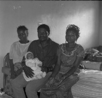 235. EAP054/1/33/349 Reference (shelfmark): EAP054/1/33/349 Title: Recreational photograph [c 1986] Scope & Content: 2 women sitting and man sitting with baby on hospital bed Format of original: 57mm x 59mm plastic negative Collection Area: Endangered Archives Programme Languages: Not applicable Date Range: c 1986 Extent: 1 TIFF image