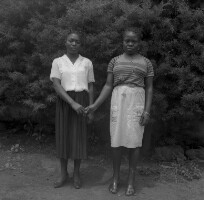 236. EAP054/1/33/353 Reference (shelfmark): EAP054/1/33/353 Title: Recreational photograph [c 1986] Scope & Content: 2 women standing holding hands by bushes Format of original: 58mm x 59mm plastic negative Collection Area: Endangered Archives Programme Languages: Not applicable Date Range: c 1986 Extent: 1 TIFF image