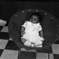 239. EAP054/1/103/370 Reference (shelfmark): EAP054/1/103/370 Title: Recreational photograph [c 1983-1984] Scope & Content: Baby in an armchair Format of original: 26mm x 59mm plastic negative Collection Area: Endangered Archives Programme Languages: Not applicable Date Range: 1983-1984 Extent: 1 TIFF image