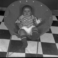 235. EAP054/1/103/360 Reference (shelfmark): EAP054/1/103/360 Title: Recreational photograph [c 1983-1984] Scope & Content: Baby in an armchair Format of original: 59mm x 59mm plastic negative Collection Area: Endangered Archives Programme Languages: Not applicable Date Range: 1983-1984 Extent: 1 TIFF image