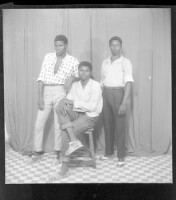 2566. EAP449/2/7/213 Reference (shelfmark): EAP449/2/7/213 Title: Three young men in the studio; two standing, one sitting Collection Area: Endangered Archives Programme Languages: Not applicable Date Range: 2nd half od the 20th century Extent: 1 TIFF image