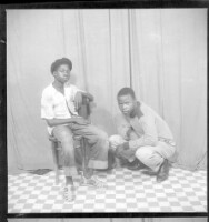 2569. EAP449/2/7/225 Reference (shelfmark): EAP449/2/7/225 Title: Two young men in the studio; one sitting, one crouching Collection Area: Endangered Archives Programme Languages: Not applicable Date Range: 2nd half od the 20th century Extent: 1 TIFF image