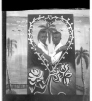 2587. EAP449/2/8/13 Reference (shelfmark): EAP449/2/8/13 Title: Two men standing behind a heart-shaped frame in the studio. Collection Area: Endangered Archives Programme Languages: Not applicable Date Range: 2nd half od the 20th century Extent: 1 TIFF image