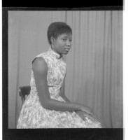 2588. EAP449/2/8/23 Reference (shelfmark): EAP449/2/8/23 Title: A woman wearing a dress sitting face-forward in the studio. Collection Area: Endangered Archives Programme Languages: Not applicable Date Range: 2nd half od the 20th century Extent: 1 TIFF image