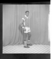 2591. EAP449/2/8/105 Reference (shelfmark): EAP449/2/8/105 Title: A man wearing shorts standing in profile in the studio. Collection Area: Endangered Archives Programme Languages: Not applicable Date Range: 2nd half od the 20th century Extent: 1 TIFF image