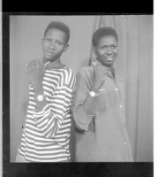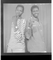 2593. EAP449/2/8/108 Reference (shelfmark): EAP449/2/8/108 Title: Two men wearing t-shirts standing in profile in the studio. Collection Area: Endangered Archives Programme Languages: Not applicable Date Range: 2nd half od the 20th century Extent: 1 TIFF image