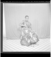 2597. EAP449/2/8/186 Reference (shelfmark): EAP449/2/8/186 Title: A woman wearing a dress sitting face-forward in the studio. Collection Area: Endangered Archives Programme Languages: Not applicable Date Range: 2nd half od the 20th century Extent: 1 TIFF image