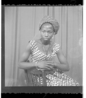 2599. EAP449/2/8/210 Reference (shelfmark): EAP449/2/8/210 Title: A woman wearing a dress sitting face-forward in the studio. Collection Area: Endangered Archives Programme Languages: Not applicable Date Range: 2nd half od the 20th century Extent: 1 TIFF image