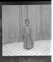 2598. EAP449/2/8/200 Reference (shelfmark): EAP449/2/8/200 Title: A child wearing a dress standing face-forward in the studio. Collection Area: Endangered Archives Programme Languages: Not applicable Date Range: 2nd half od the 20th century Extent: 1 TIFF image