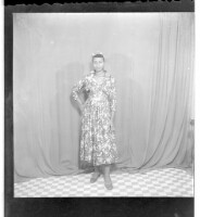 2600. EAP449/2/8/245 Reference (shelfmark): EAP449/2/8/245 Title: A woman wearing a dress standing face-forward in the studio. Collection Area: Endangered Archives Programme Languages: Not applicable Date Range: 2nd half od the 20th century Extent: 1 TIFF image
